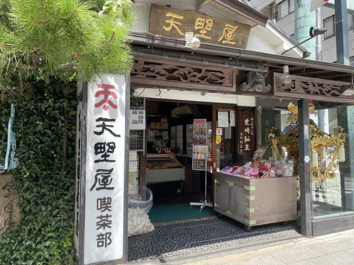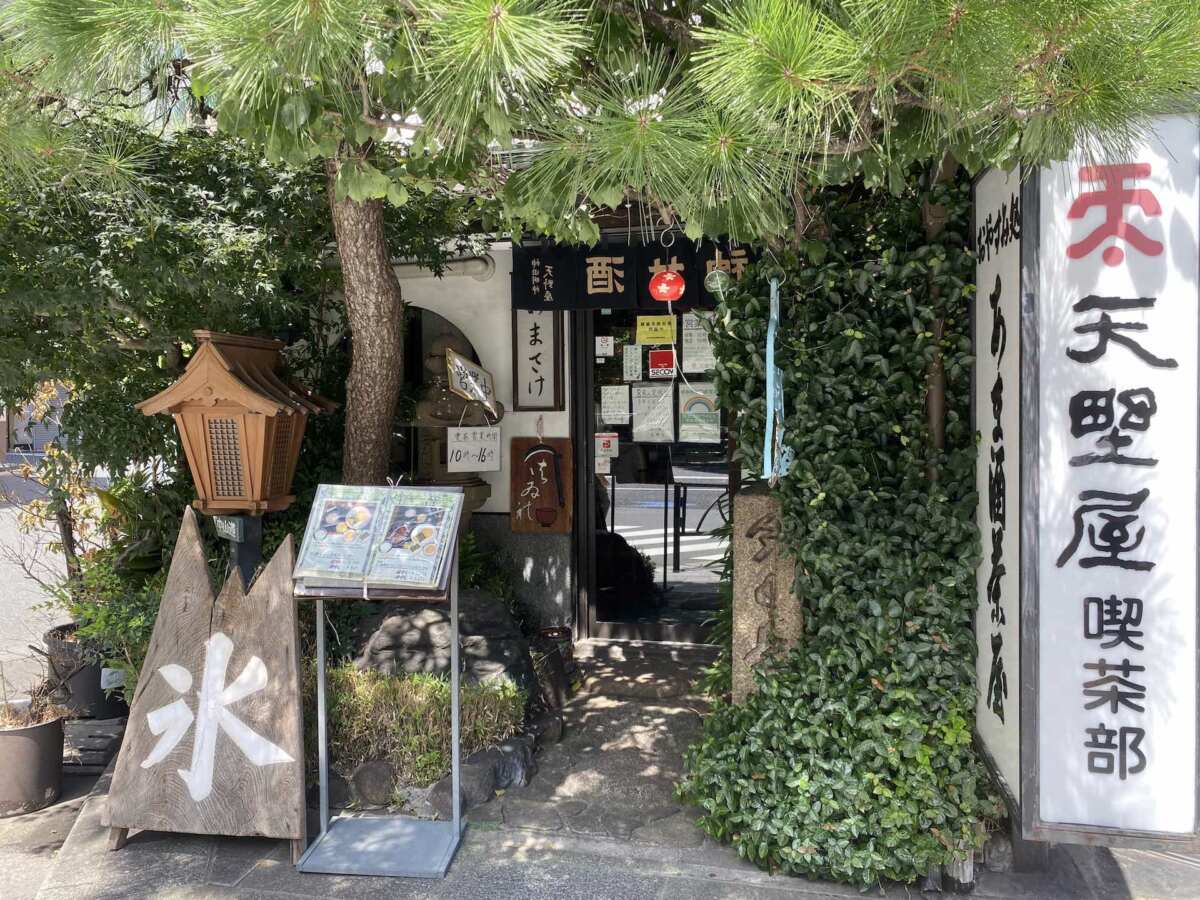 そして、参拝をしたら必ずと言っていいほど立ち寄らなくては気が済まなくなるお店が、参道入口の鳥居すぐ横にある甘酒茶屋『天野屋』。江戸時代末期、1846年からある老舗です。
