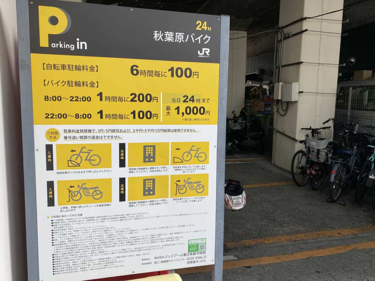 秋葉原駅周辺にあるバイク駐輪場を利用