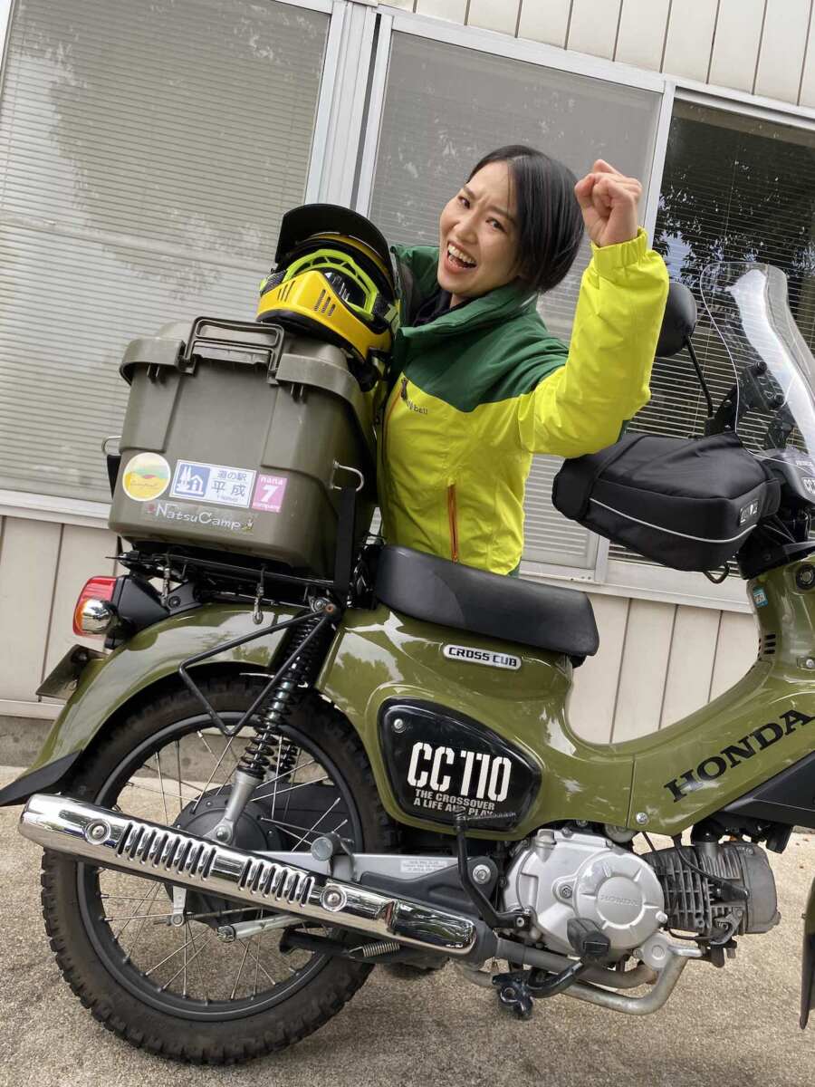 『クロスカブ110』と『スーパーカブ90』に、冬の降雪地方へのツーリングにマスト装備といえるスパイクタイヤを履き、ご主人と年越し北海道ツーリングを経験したことがある高木はるかさんです!!