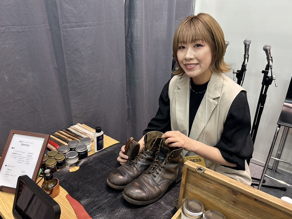 そして、内外出版社ヤングマシンのブースでは、“いとちゃん”こと伊藤由里絵さんによる『いとの靴磨き屋さん』の出張所も出現。埼玉県警の警察官/白バイを経て、現在はモデル業と並行してシューシャイナー(靴磨き職人)として、バイクで全国を行脚中という異色のキャリアを歩み続けます。こちらも大人気でした。