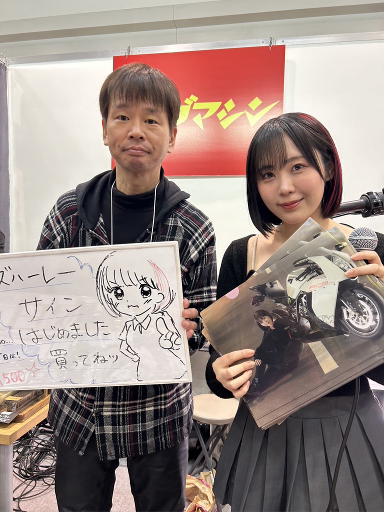 土曜日と日曜日はヤングマシンファミリー4誌(ヤングマシン/モトツーリング/モトメカニック/ウィズハーレー)の編集長が、それぞれとっておきのゲストを迎えて、普段は言えないぶっちゃけトークを披露。ウィズハーレー編集長であるボクは、夜道雪さんをゲストに招いたのでした!