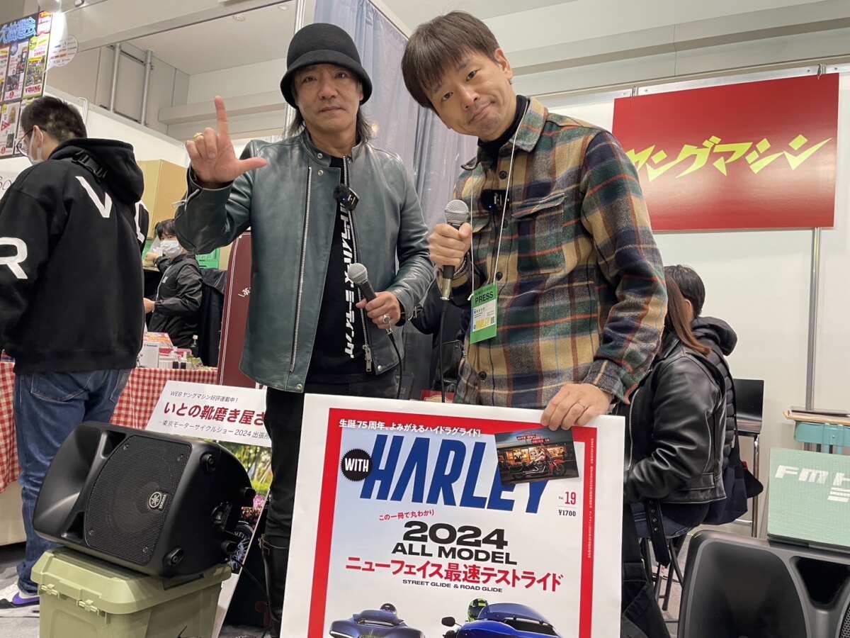 これまでもウィズハーレーの誌面にご登場していただき、2023年にはハーレーダビッドソンの公式イベントにも参加していただきました。おかげさまで『ウィズハーレー・トークセッション』は大反響。ブースの前は人でイッパイになり、近隣の出展社様にご迷惑をかけてしまうほどの盛況となりました。