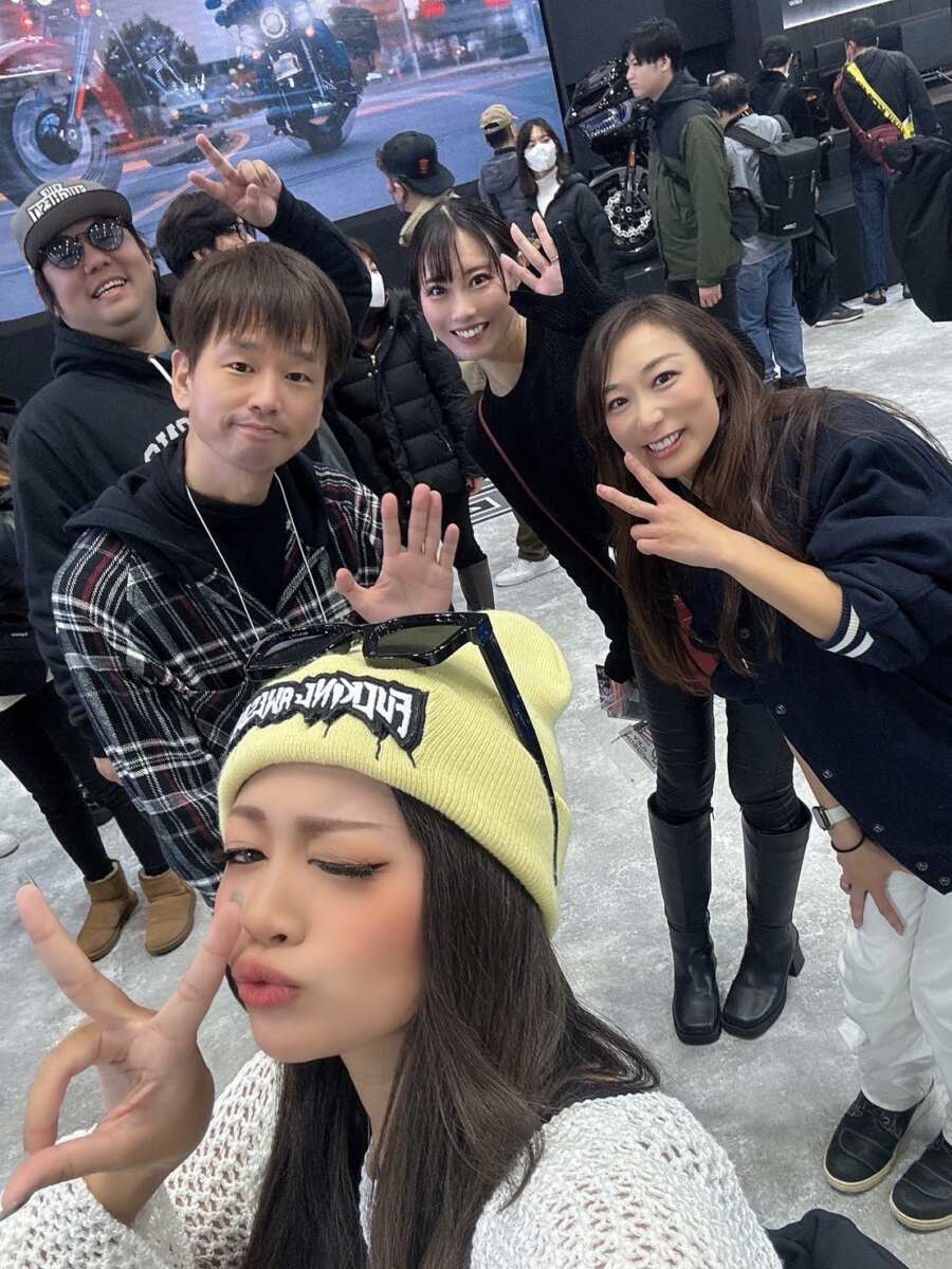 ブースには、ハーレー女子たちが遊びに来てくれました。スポーツスター・アイアン883に乗るメグミさんは、ウィズハーレーの撮影にも参加。これまでもイベントのお手伝いなどをしてくれて、本当に嬉しいかぎりです。