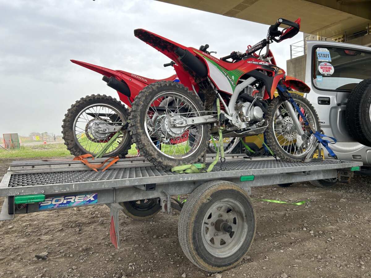 また『CRF125F』で、こんなふうに気の合う仲間たちと、そんなことがやれたらいいなとボンヤリ思っていたら、Cさんがトレーラーにて一旦積んで帰るとのこと。レンタルのイベントなどで使うそうで、『CRF125F』はいろいろなところでフル活用されていくのでした。