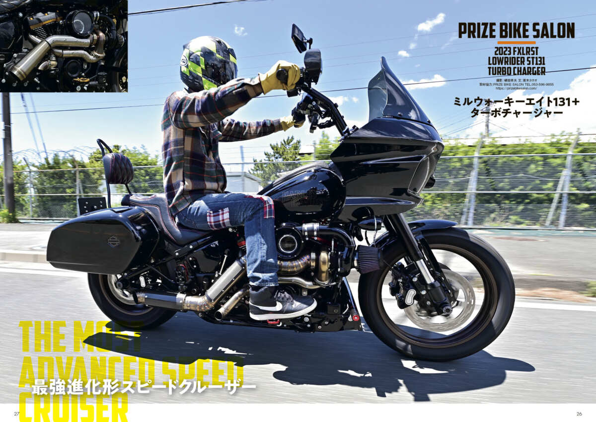 さらにもう1台の試乗レポートを今号ではご紹介。こちらは同じくスクリーミンイーグル・ステージ4キットで排気量を2147cc化したエンジンに、ターボチャージャーが組み込まれています。