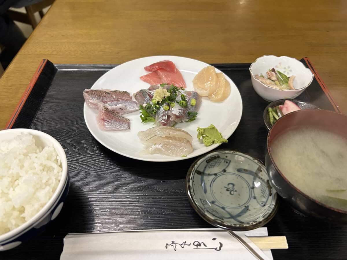 「ひとり、大丈夫でしょうか?」と聞きつつ入店すると、快く席に迎えてくれます。注文したのは刺身定食(主に地魚)/1500円。満足度満点、オススメです! 不定休で休日も11:00〜14:00に営業していますが、ボクは平日にしか行ったことがありません。