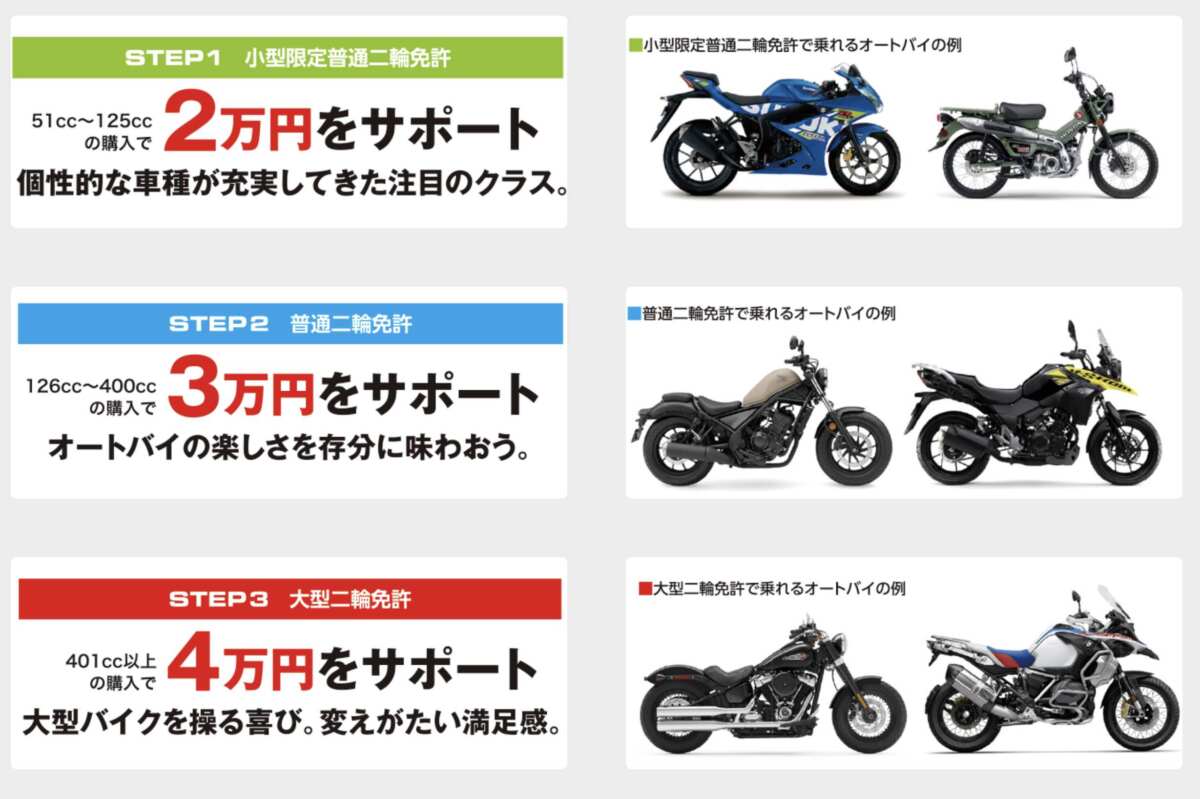 普通二輪免許 126cc~400ccの購入 3万円サポート