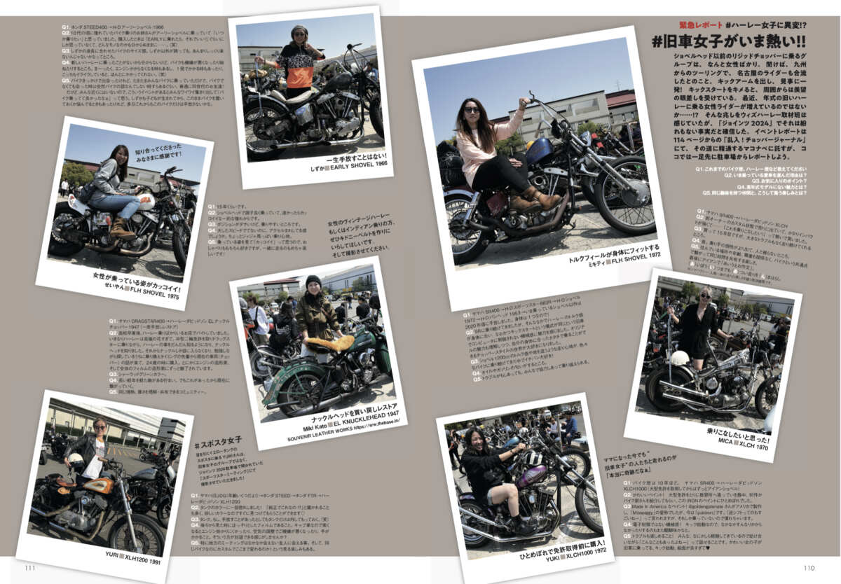 これに着目したボクは『ウィズハーレーVol.20』(6月24日発売/内外出版社)にて、緊急レポート「#旧車女子がいま熱い!!」と題した記事を書きました。