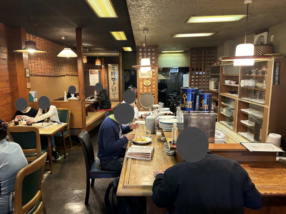 初めて訪れるときは、少しの緊張感とワクワク感。土曜日のお昼過ぎ、中に入ると席はほぼ埋まっていて繁盛していることが一目瞭然でした。