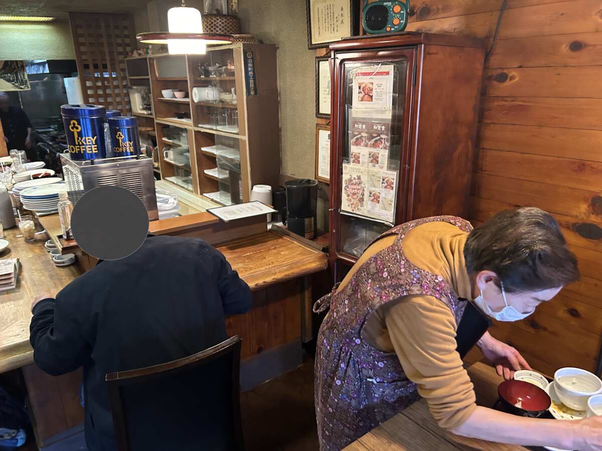 小上がりもあり、これぞ昭和の大衆食堂と言わんばかりの風情ある店内。いつも満席なので、閉店間近に写真を撮らせていただきました。