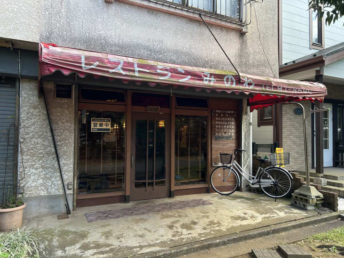 今回ご紹介するのは、千葉県柏市大津ケ丘にある「レストランみのわ」さん。昭和レトロな食堂巡りが好きなボクには、たまらない店構えです。まず外から見て、そのドアを開けずにはいられない佇まい。「地元の人たちに愛されている名店に違いない」と、ボクは確信しました。