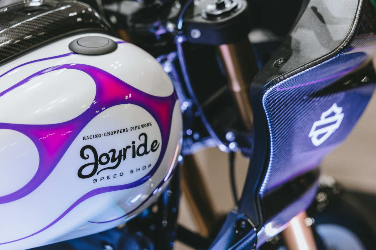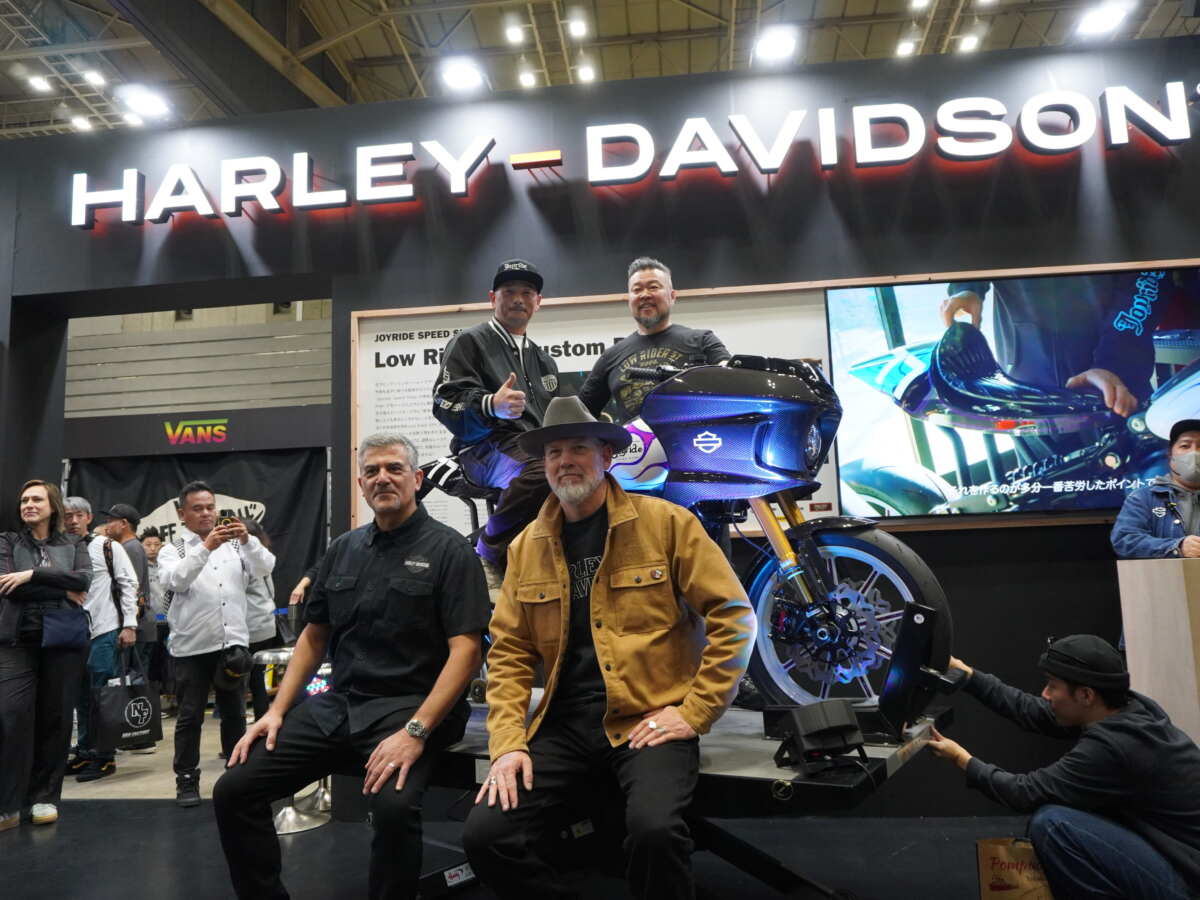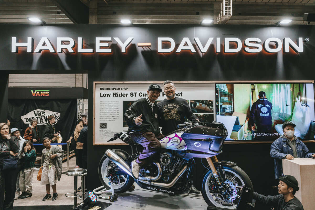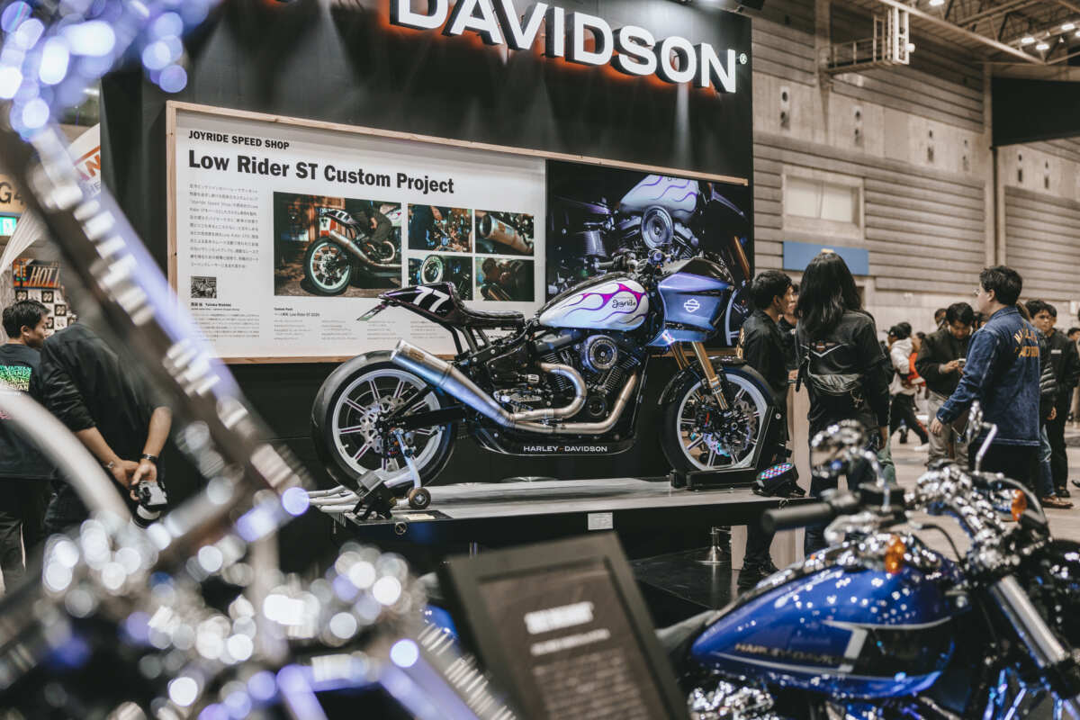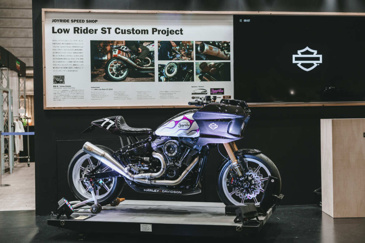 ハーレーダビッドソンブースでは、JOYRIDE SPEED SHOP(ジョイライド スピードショップ)の西田裕氏が手がけた「ローライダーST」のストリートレーサーが公開されました。