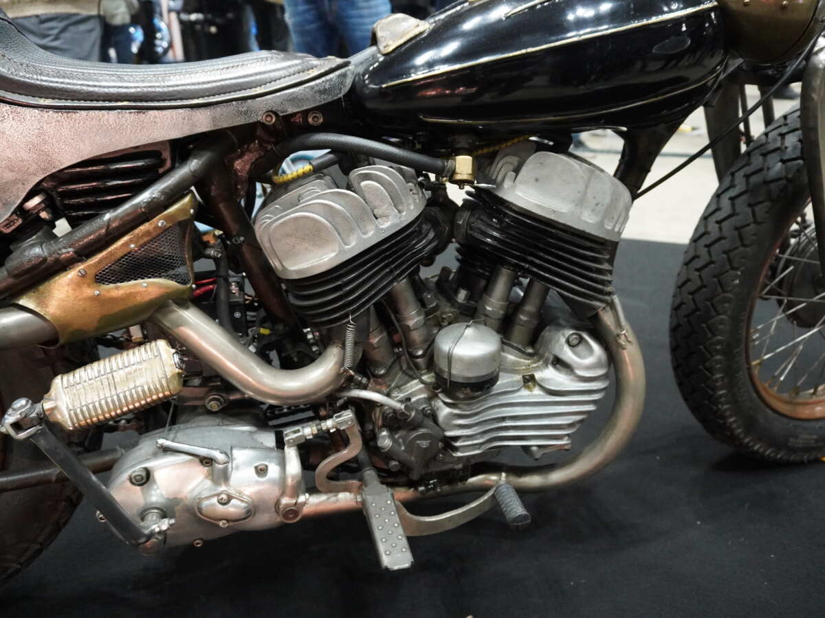 以前、こちらでもレポートした通り、カスタム界の重鎮であります木村信也さん。今回は心臓部を4カム・サイドバルブエンジンWLのカスタムを展示。ファンが熱視線を送っていたのは言うまでもありません。