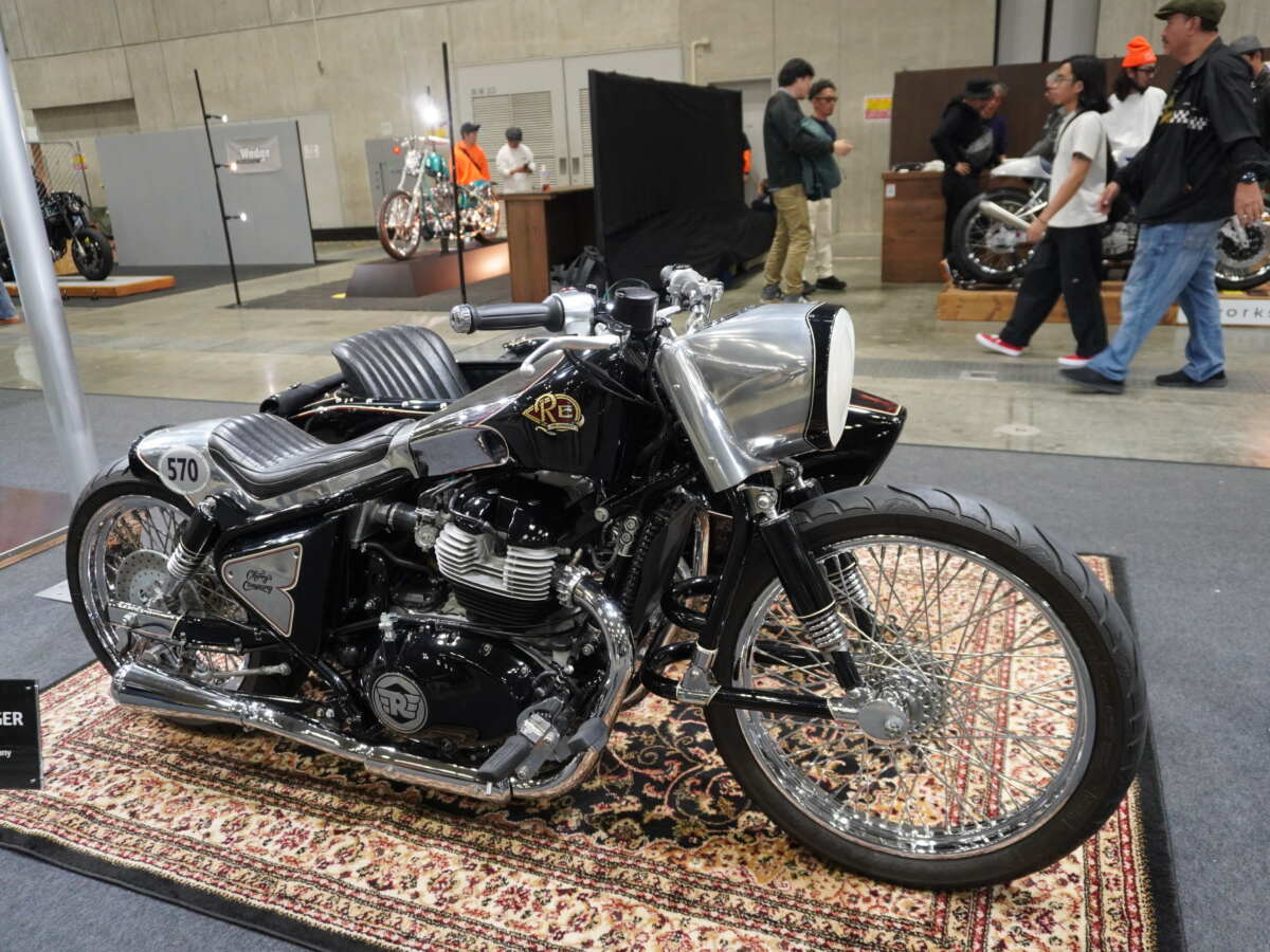 前回のヨコハマホットロッド・カスタムショー2023で世界初公開したカスタムサイドカーが、再び脚光を浴びていました。チェリーズカンパニー黒須嘉一郎氏によって製作された「CHALLENGER」です。SUPER METEOR 650をベース車両としています。