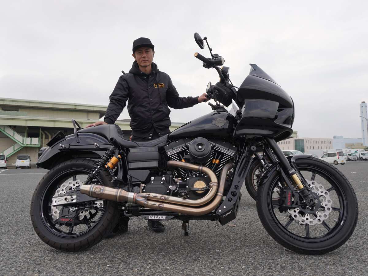 YU-YAさんもまたローライダーSに乗っているのですが、YUMEさんが乗るM8(ミルウォーキーエイトエンジン)搭載モデルではなく、その先代にあたる『ダイナ・ローライダーS』が愛車。細部に至るまで徹底的にカスタムされているのですが、クラブスタイルでYUMEさんの乗るローライダーSと巧みにコーディネイトしつつ、センス良く仕上げた2台をペアで乗っているのですから、イベント会場でも熱視線を浴びます。