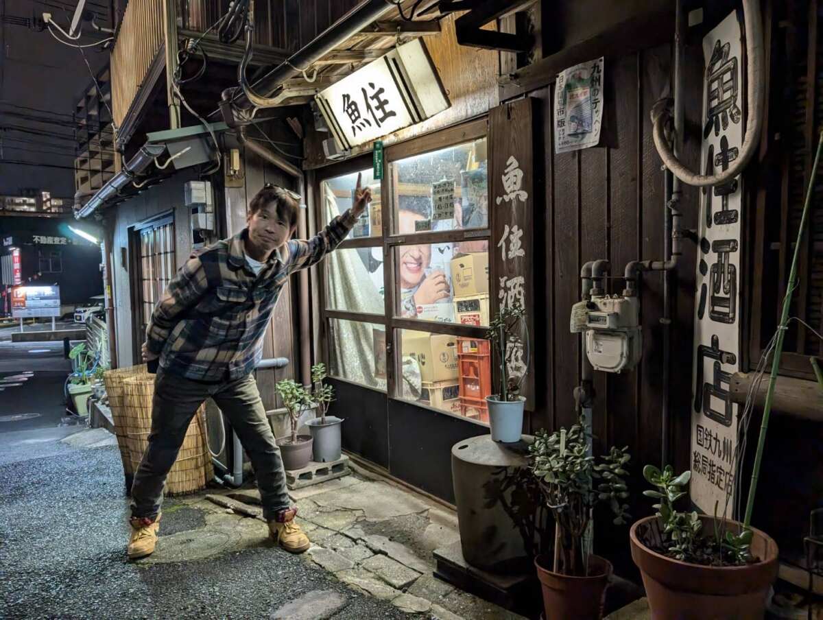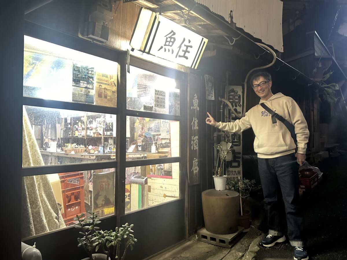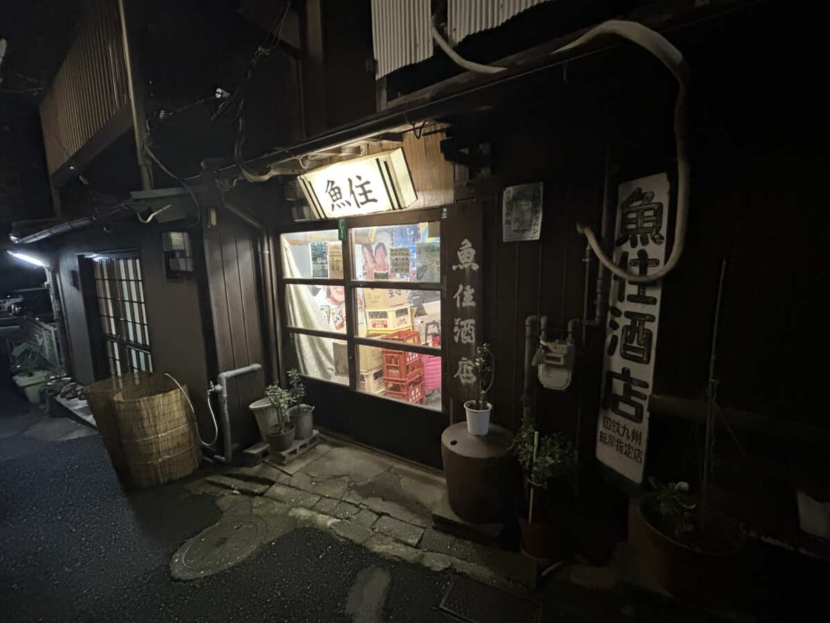 そんなふうに日中はしっかりと取材(仕事)をし、一応は(!?)働いたボク。夜は自分へのご褒美が必要です。北九州を訪れたら行きたいのが門司港駅。そして今回、どうしても足を運びたいと願っていたのが、門司区清滝にある“角打ち”の人気店『魚住酒店』です。