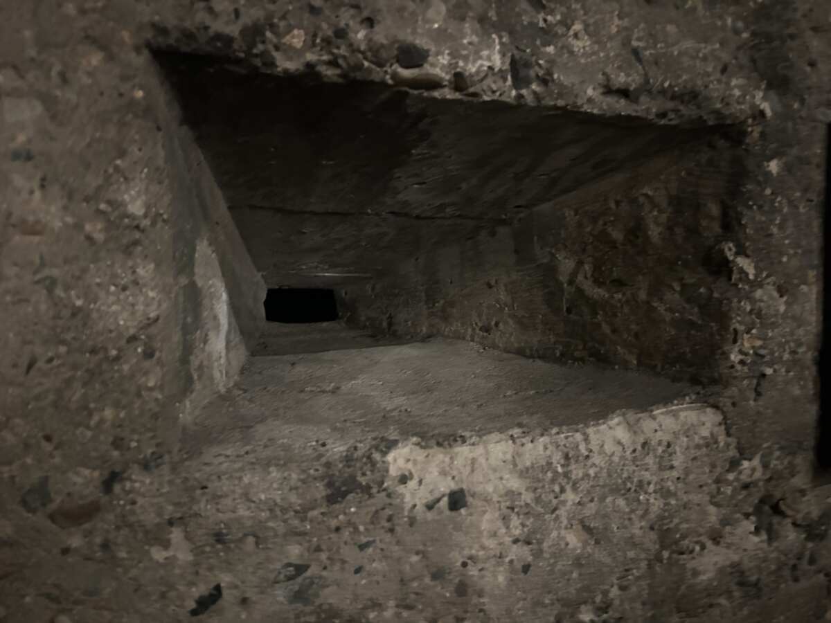 そして、ボクが見るたびに鳥肌が立ち、同行者がもしいれば必ず熱弁を振るうのが、戦争末期に軍の命令で設置された渡航者の監視孔跡です。