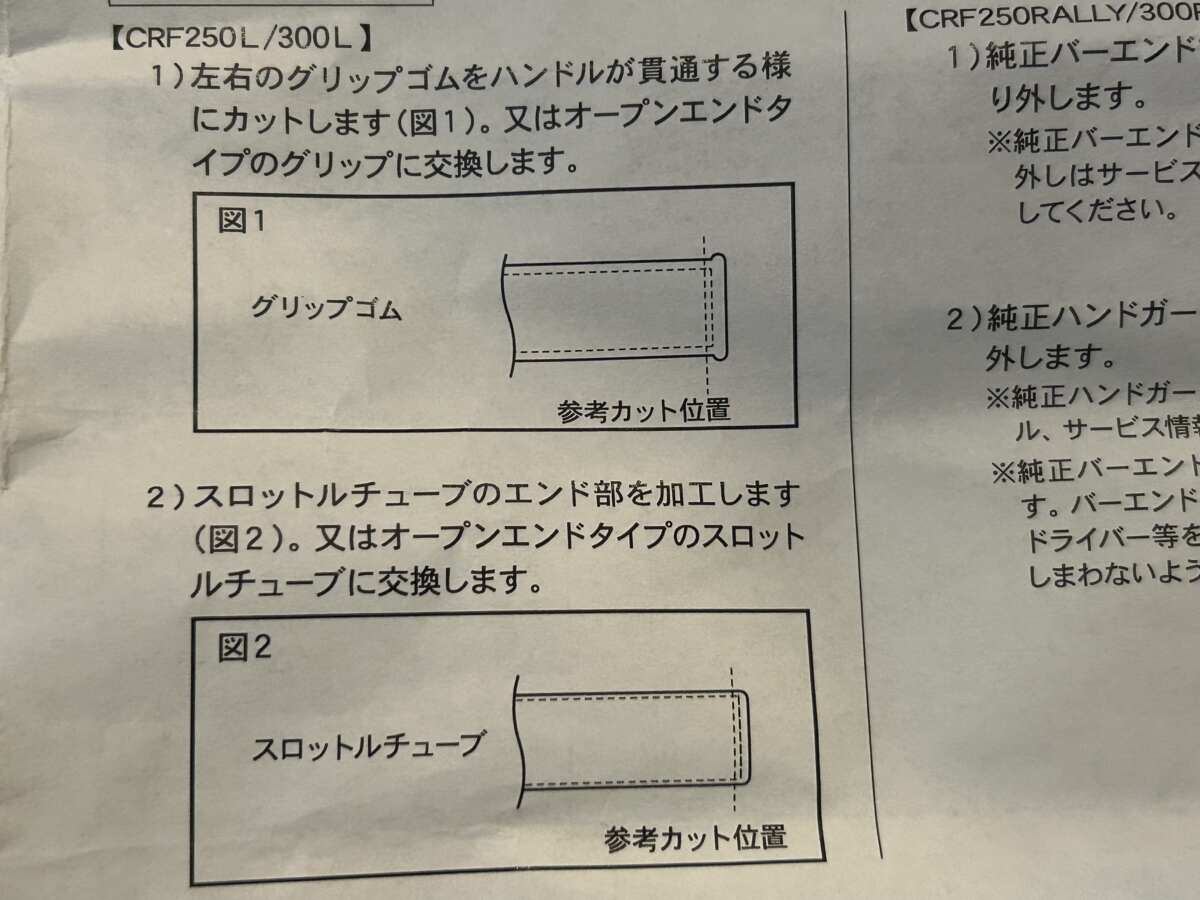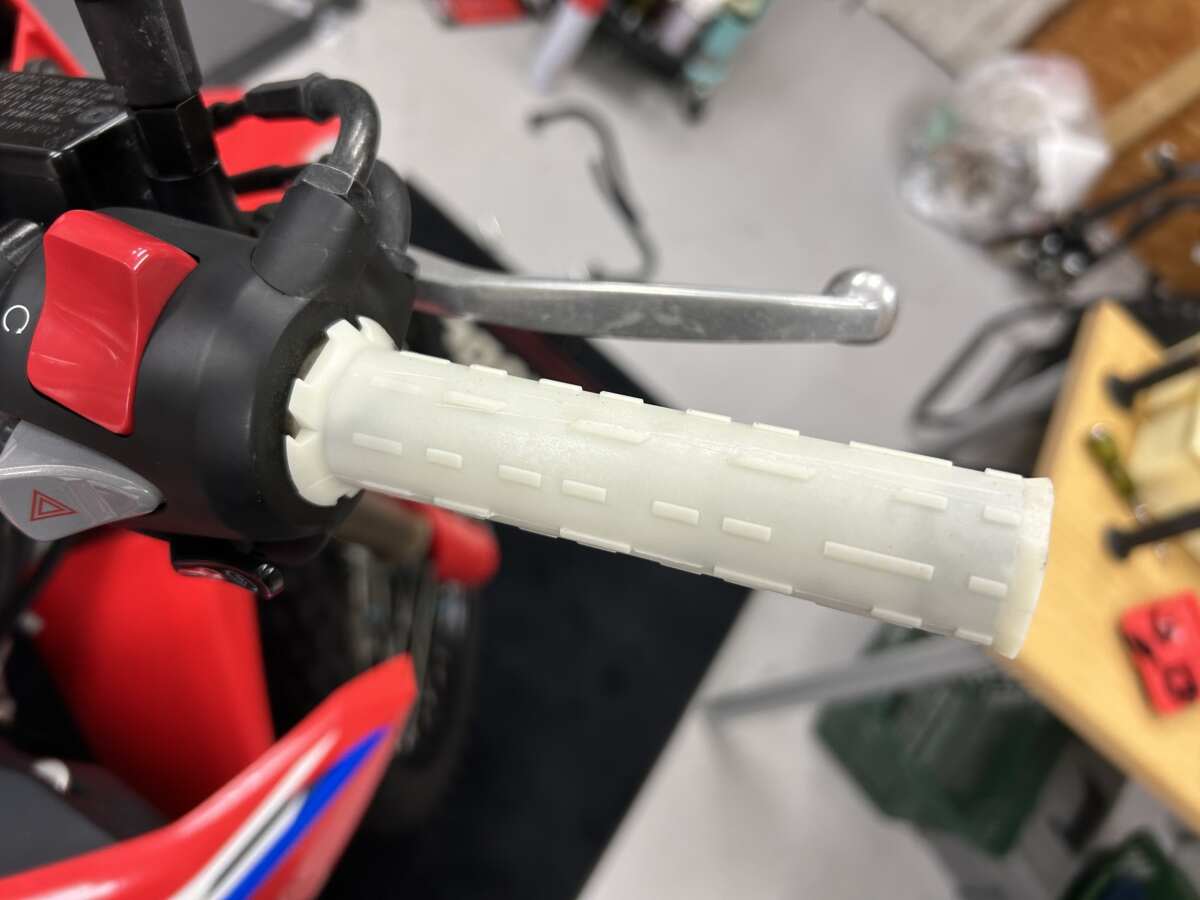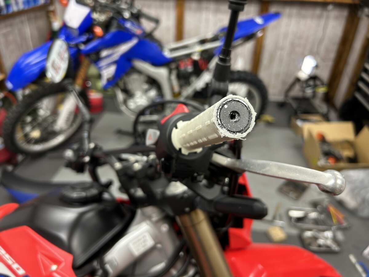 ハンドガードの装着は、スロットルグリップ側に苦戦します。結論を言ってしまうと、アクセル側のグリップとスロットルチューブ、いずれもオープンエンドタイプを用意しておくべきでした。