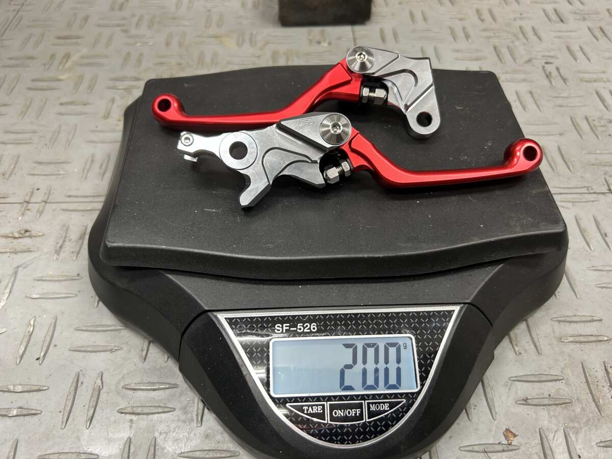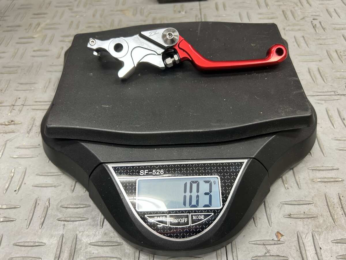 興味本位で重さを測ってみると、純正ノーマルレバーが左右2本で142グラム。ジータレーシングは200グラムで、ピボットシステムやアジャスタブル機構が備わるために58グラム増ですが、その機能を考えれば、わずかな重量増であり、よくぞここまでに抑えたと賞賛に値します。