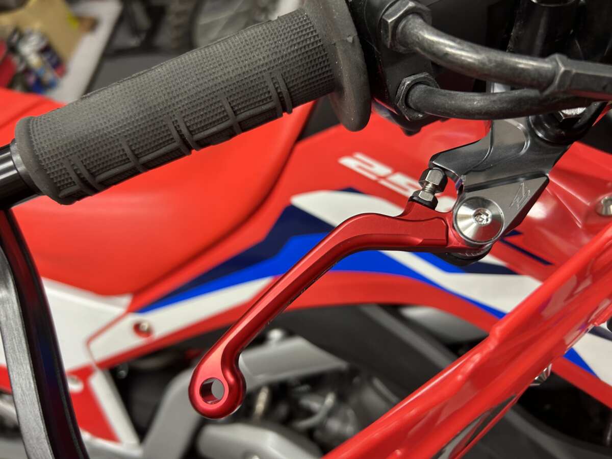 ▲ホンダ『CRF250L』の純正アクセサリーとしても採用されているZETA RACING(ジータレーシング)の可倒式レバー。レッドバロンでオーダーから取付けまで、すべてをお任せすれば、不安はありません。