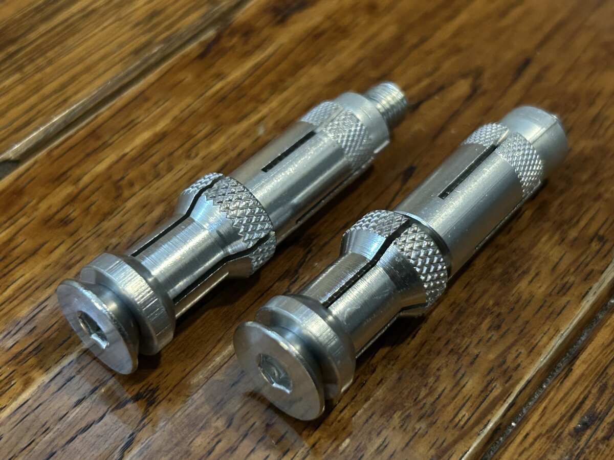 社外品のアルミハンドルバーに取り付ける場合は、ハンドルパイプのエンド部にボルトを締めていくのに伴って広がっていくアンカーボルト「バーエンドプラグ」を用います。