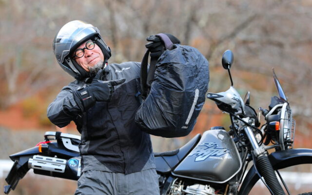 ※林道などへ行くとき、これまではレバーや工具などをリュックに入れて背負っていました。