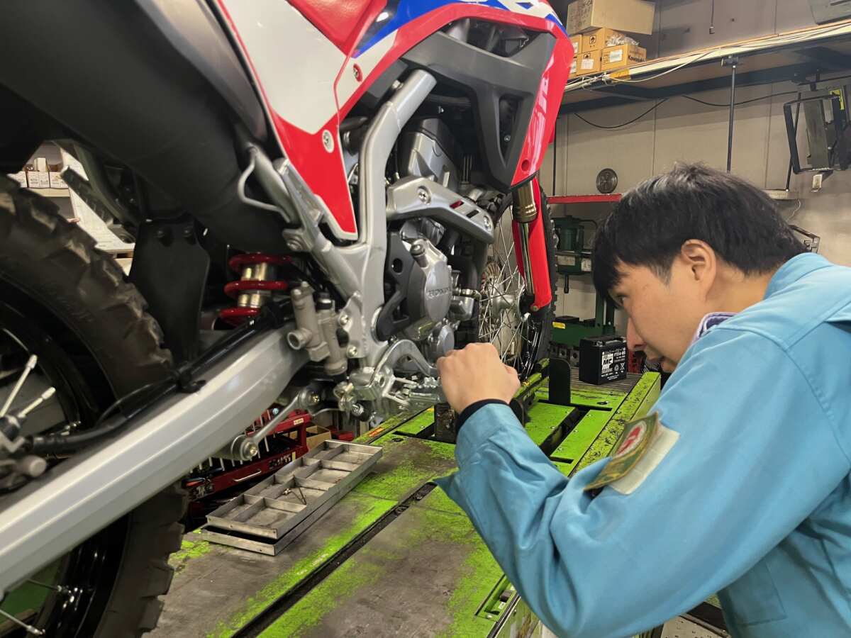 数日後に連絡が入ると、CRF250Lは完調に戻っていました。澤田工場長が作業内容を詳しく説明してくれ、「締め付けトルクはすべて規定値通りに」とのこと。