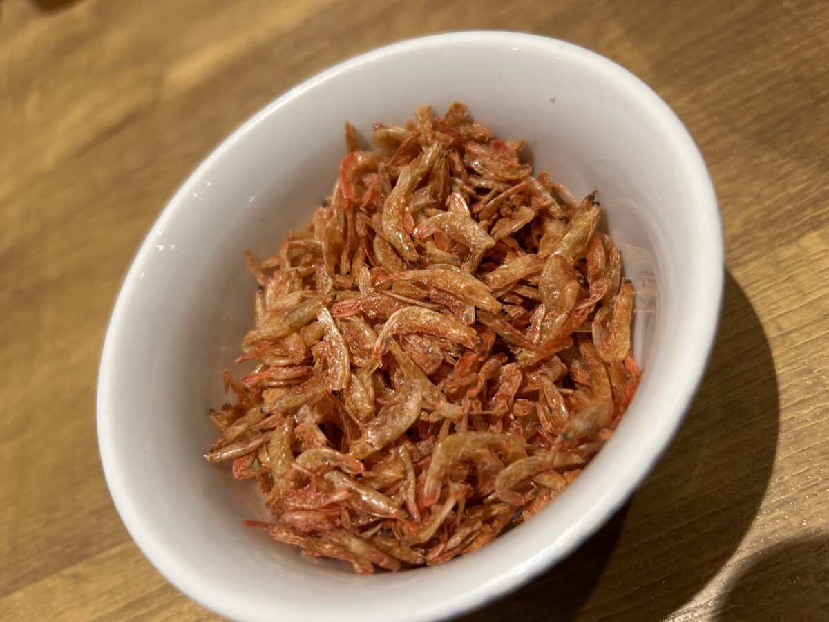 ボクが好きなトッピングは「もやし」と「小エビ」。別のどんぶりでくるから、嬉しいかぎりです。