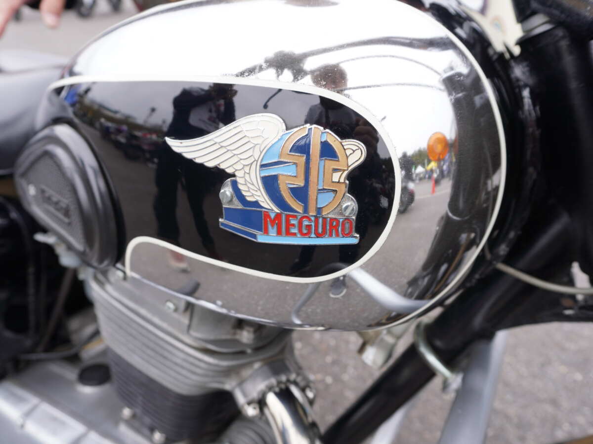 エンブレムはMEGUROのロゴにカワサキリバーマークをミックスさせたもの。