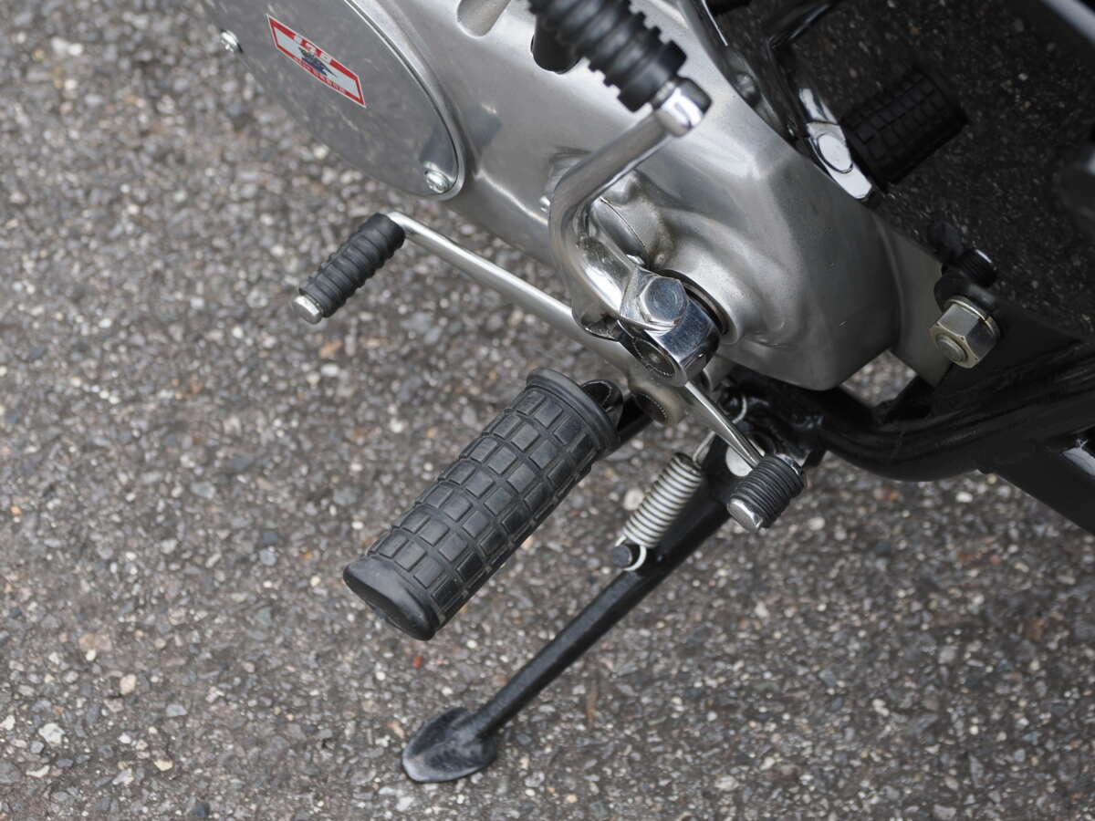 カタログスペックによれば、最高速度は120km/hを発揮。4速ロータリーチェンジはシーソーペダルで操作します。もちろん始動方式はキックのみ。