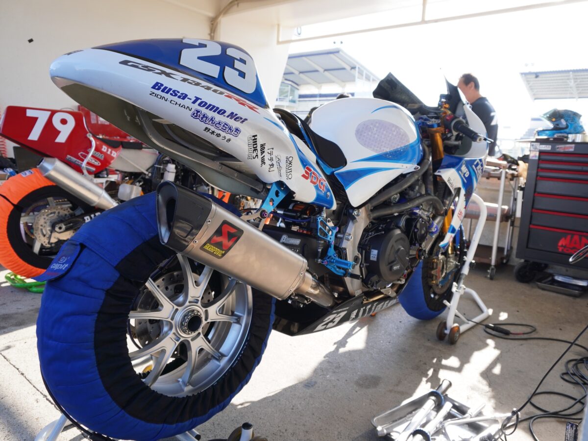 加賀山さんと上田さん、ものすごいレジェンドライダーたちに挟まれつつ話を伺っていると、「取材なら写真もどうぞ」と嬉しいお言葉が。レース前で、それどころじゃないはずの加賀山選手ですが、とにかく誰にでも優しいのです。