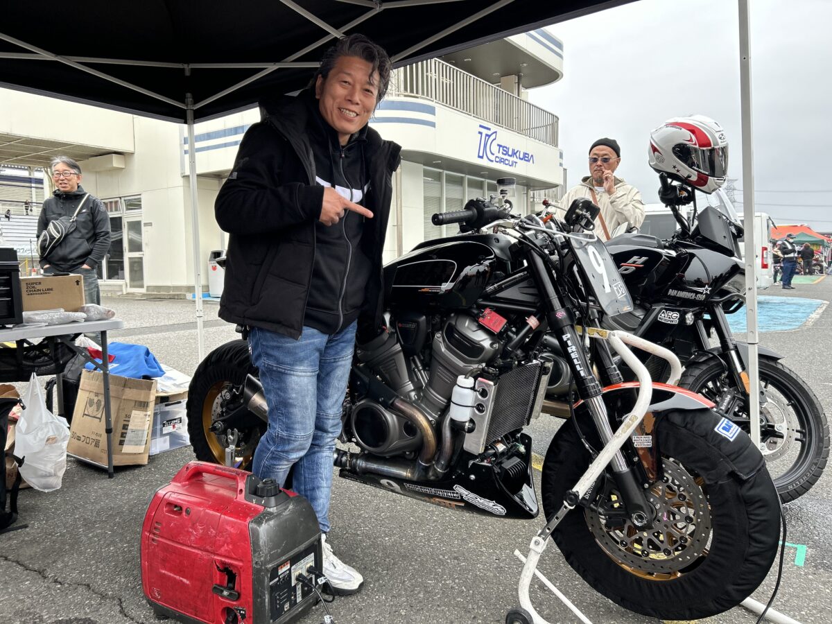 じつは上田さんの写真を撮った2024年春のレース時にも、ボクは加賀山さんを取材し、お話を聞いていました。ハーレーダビッドソン博多の武田隆司さんがパンアメリカ1250をベースにロードレーサーをつくって参戦した模様を取材していたときです。