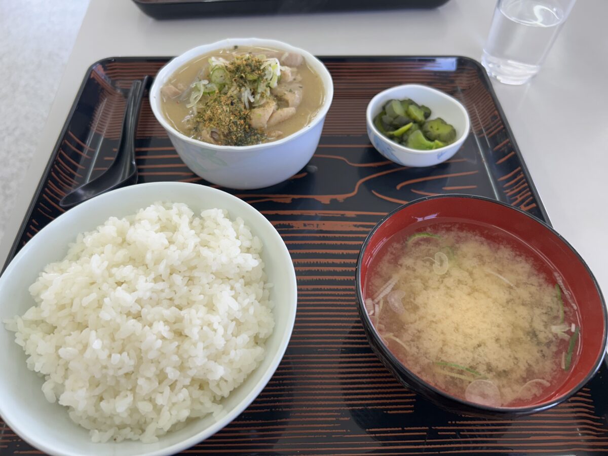 サーキットで走った後、あるいは走る前でも!? 少し辛くて深みのある美味しい汁をすすりながら、ご飯をかっ込むとサイコーなのです。さらに味噌汁も付いていて、この組み合わせがなんだか懐かしい味で、たまりません!! お漬物が「きゅうりのキューちゃん」っていうのも素敵です。