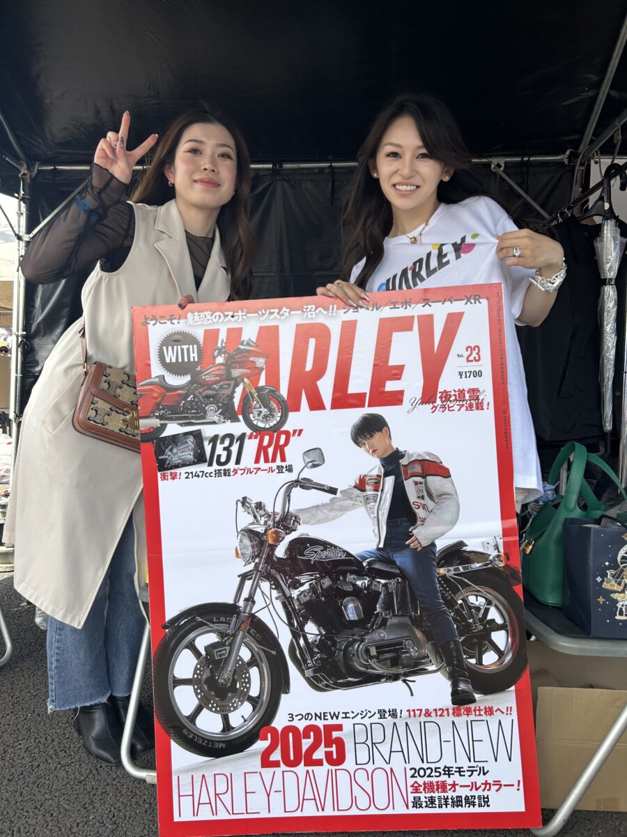 ボクたちウィズハーレーのブースには、誌面やSNSで活躍するハーレー女子たちがファンを待ちます。