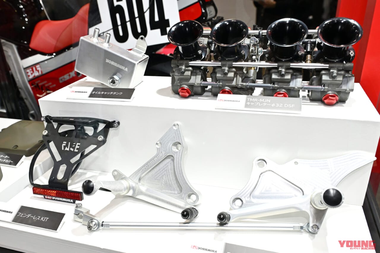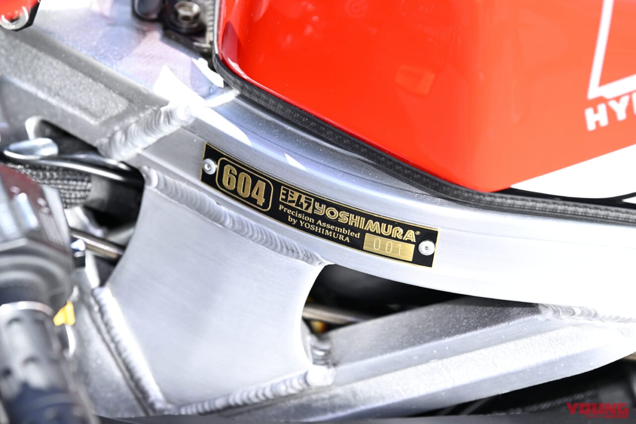ここまでで紹介した純正互換パーツとヨシムラパーツに加え、社外パーツを併用して製作されるのがコンプリートマシンで、2025年3月の東京モーターサイクルショーで発表された「#604コンプリート」がその第一弾。程度良好な中古車をベースに、1986年のAMAスーパーバイクに参戦した辻本聡車をモチーフとするヨシムラ独自のカスタムが施されている。