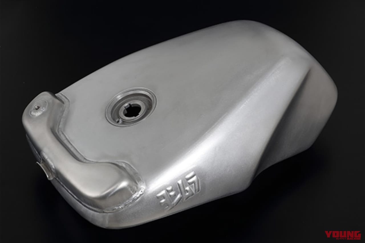 「ヨシムラ」のプレスロゴと「Bonneville」のレーザーマーキングロゴが入ったアルミタンクは28万8200円で発売中。容量は24Lで、初期型750と1100の2機種に対応するのはスクリーンと同様だ。