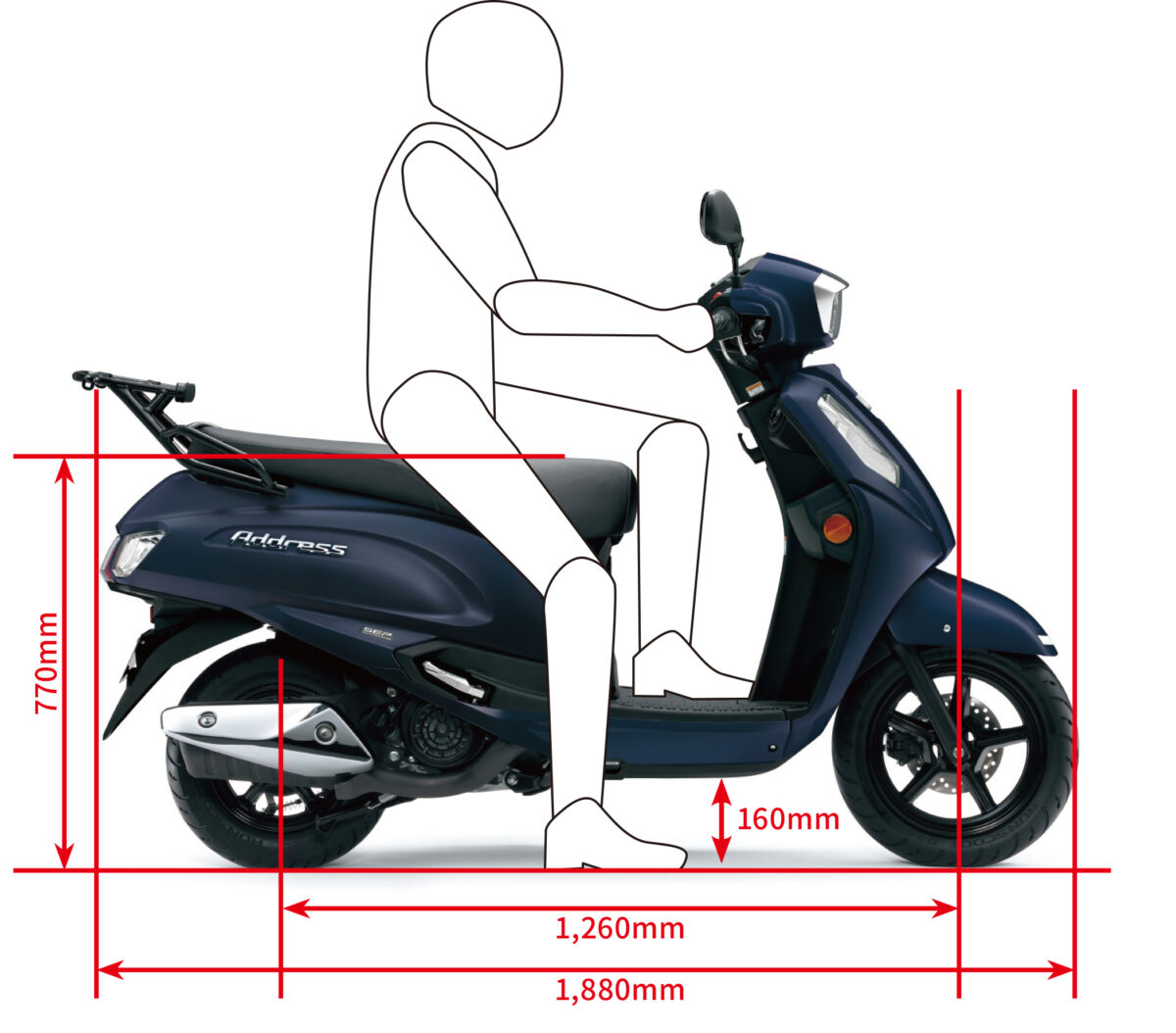 『アドレス125』では、お馴染みと言えるフルフラットなフットスペースを踏襲。シートも平らで、タンデムがしやすくライディングポジションにゆとりがあります。