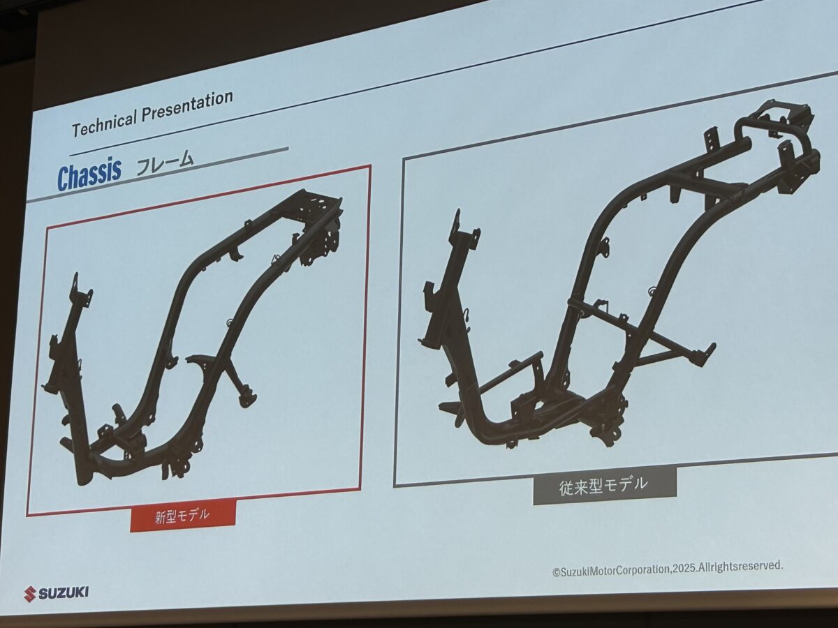 新型『アドレス125』はフレームも新作で、前後サスペンションもセッティングの見直しがされています。