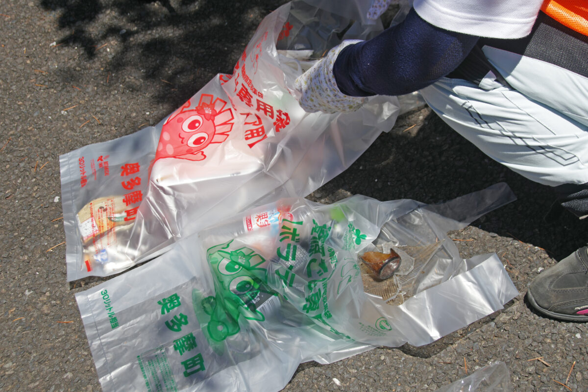 ▲清掃活動は、地元・奥多摩町の議員らともつながって理解を得ながら行われている。ゴミ袋は町が用意したもので、清掃後の回収も町が行う