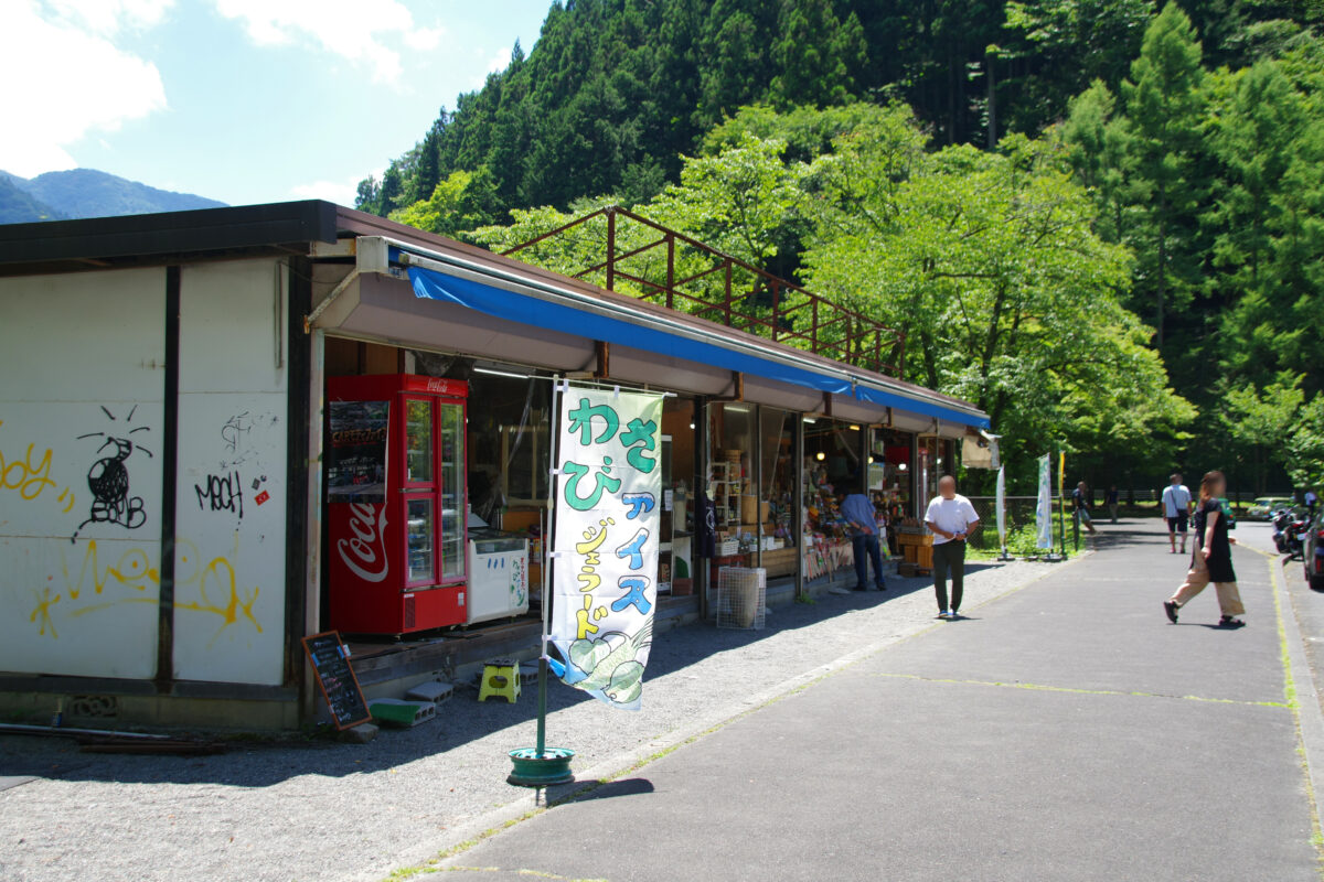 小河内(おごうち)ダムにほど近く、広々とした舗装駐車場には、軽食や飲料、菓子のほかお土産なども販売している大麦代園地売店が設置されており、単なる無料駐車場ではなく、観光客からも憩いの場所として認知されている。