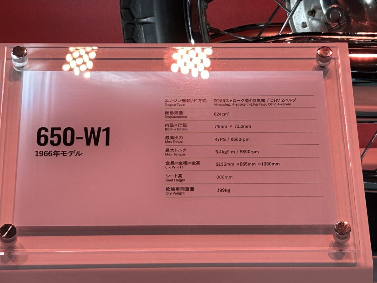 Wシリーズ生誕60周年の節目とのことで、1971年式『W1SA』に乗るボクとしては、とても嬉しい展示でした。