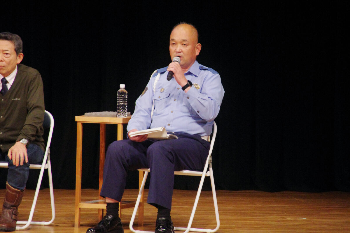 ▲小鹿野警察署の取り組みと町内の交通死亡事故ゼロ5000日達成(25年6月21日)について話す篠永 作 副署長