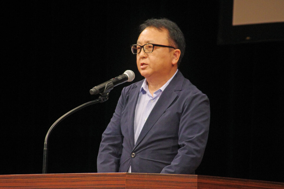 ▲ステージでの発表が終わり総評を述べた自工会二輪車委員会の設楽元文委員長。「ウエルカムライダーズおがのによる町民、警察、行政が連携したライダー歓迎の取組みは印象深く、交通死亡事故ゼロ5000日超は真に驚き。フォーラムの目的である『世界に誇れるバイク文化の創造』につながるものと思う」