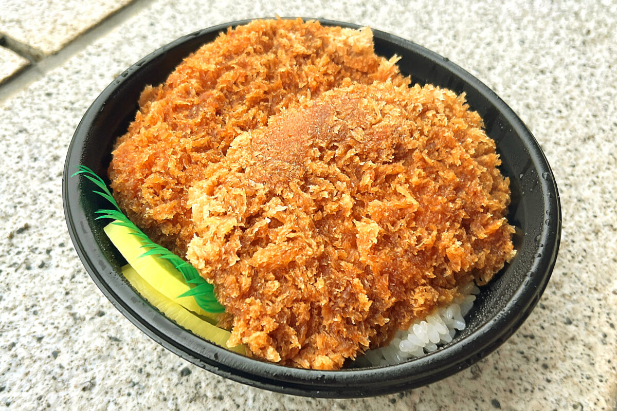 ▲翌日のイベントには多数の飲食店が出店した。写真はレストランイデウラの「わらじかつどん」(1,200円)