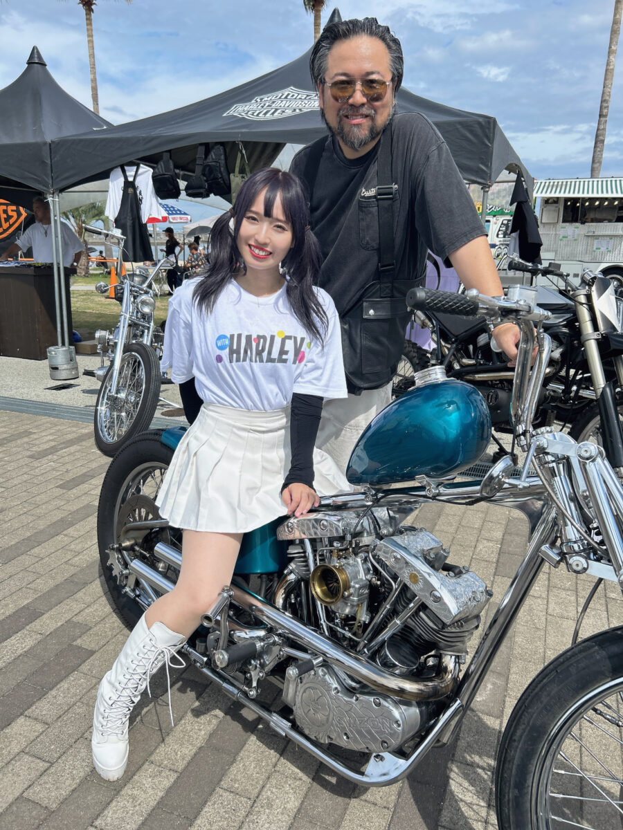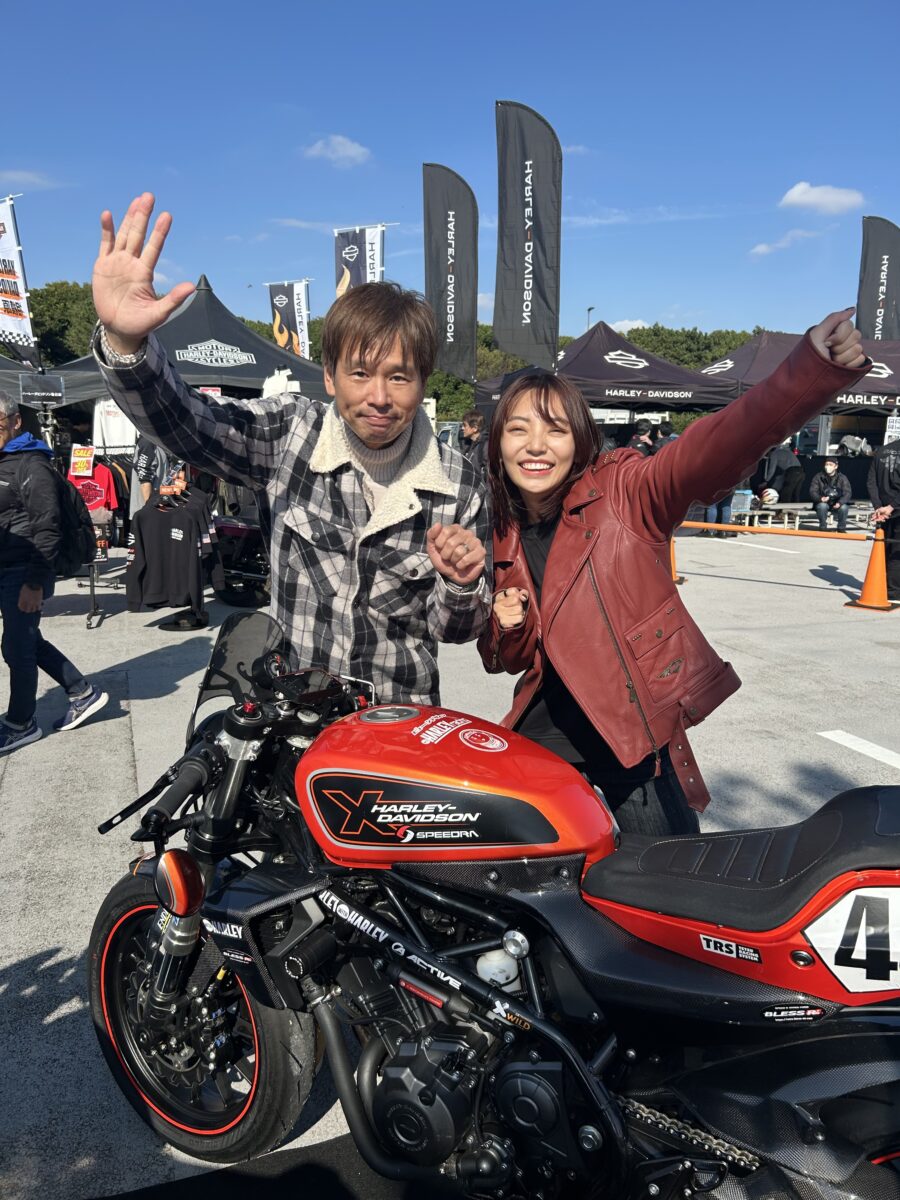 というのも、ハーレーダビッドソン公式のミーティングなど、全国各地で開催されたイベントでレポーター役、さらに『ウィズハーレートークショー』にてゲストとしてお招きし、ボクと一緒に来場者のみなさんの前でおしゃべりしていただいたのです。