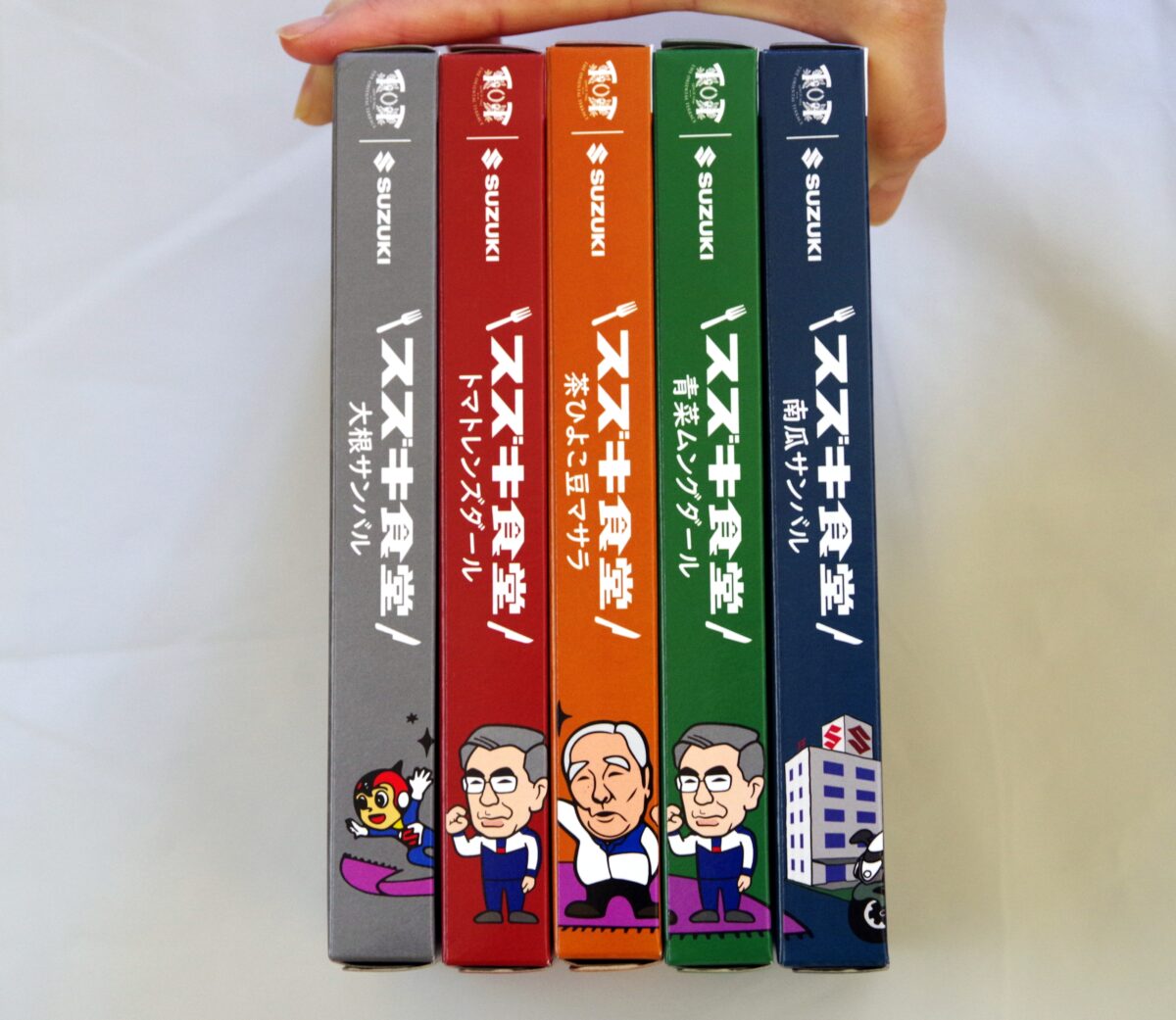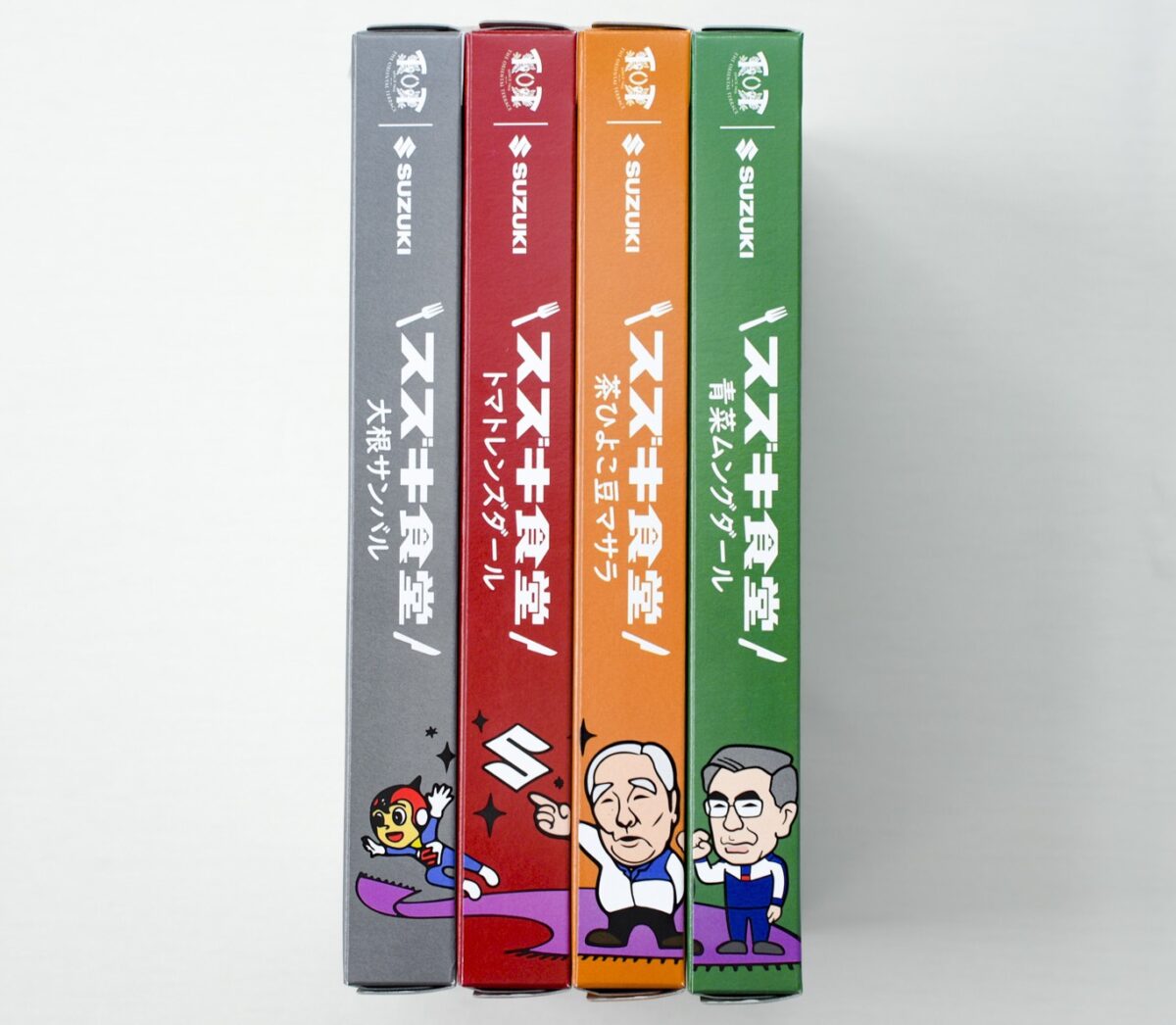 パッケージは種類ごとに解説するが、ハヤブサやVストローム1050DE、ジムニーなどスズキの二輪四輪があしらわれている。また、背表紙をつなげると1つの絵ができる隠し絵もマニア心をくすぐる。