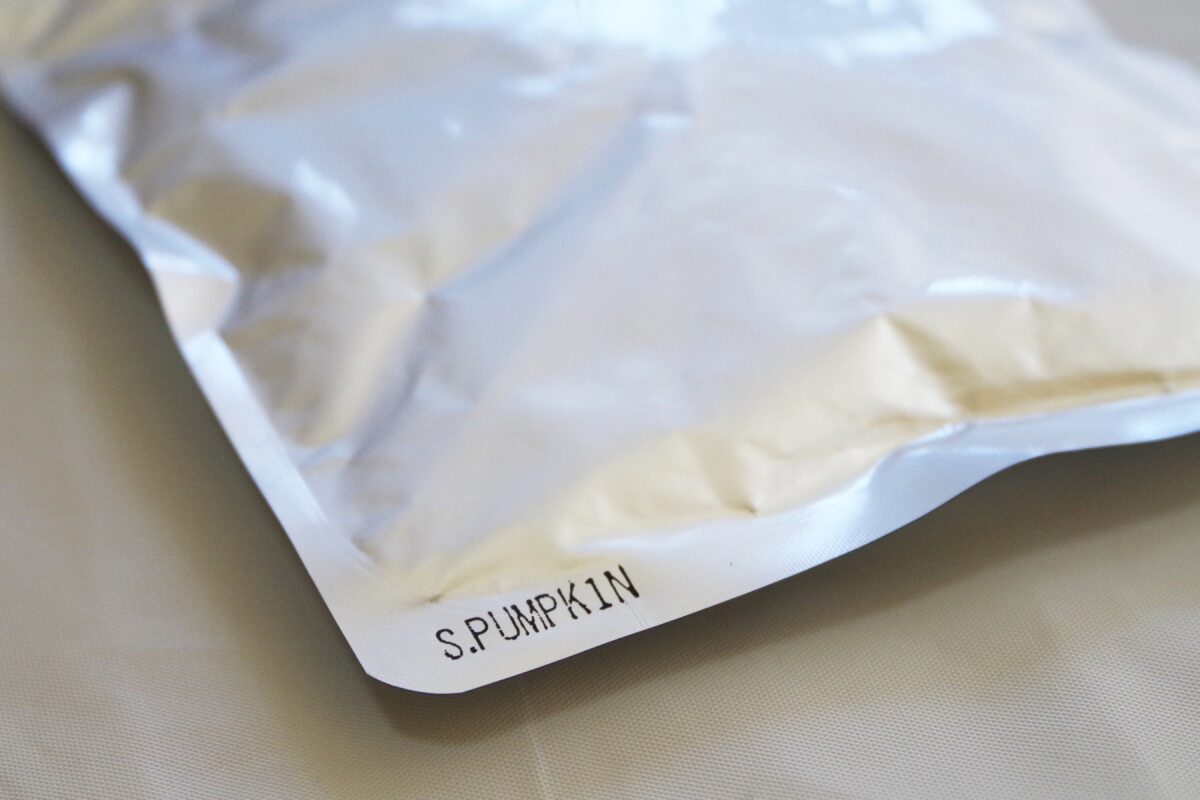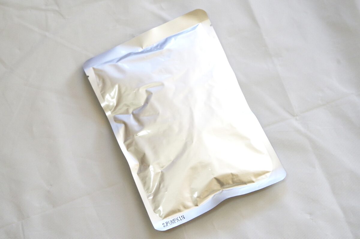 ↑ただし袋の左端に小さく商品名が書かれており、違うカレーをまとめて食べても間違う心配ナシ!(写真は南瓜サンバル)