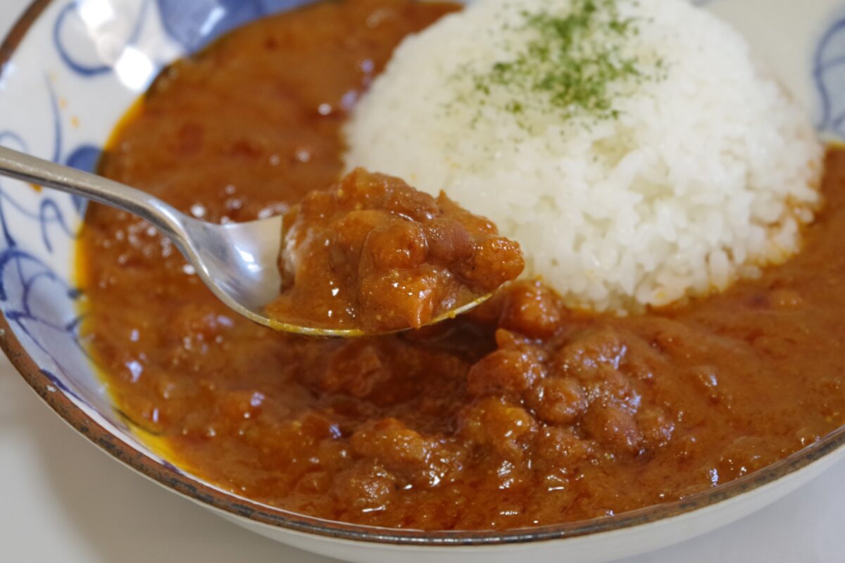 ↑具(レンズ豆)の存在感がスゴい! トマトらしく赤いルーが特徴。