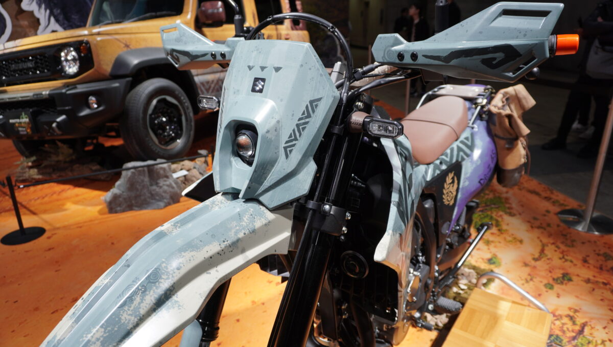 スズキブースでひときわ存在感を放っていたのが『DR-Z4S MONSTER HUNTER WILDS Edition』。カスタムカーを目当てに訪れたクルマファンたちからも注目を集めていました。