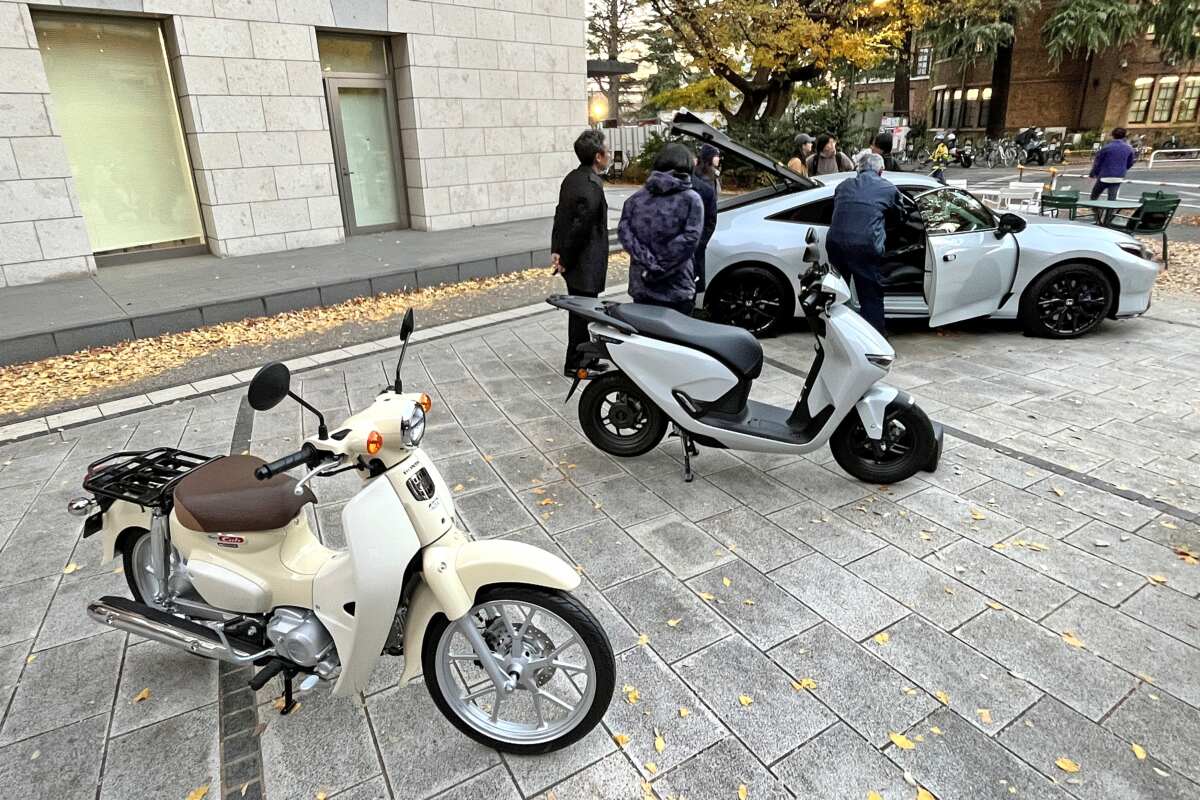 ▲新基準原付の「スーパーカブ110ライト」や電動原付二種スクーターの「CUV e:」にも触れられました